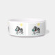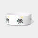 Un bol en céramique blanche moyenne, avec l'option de customiser = " Le nom de votre chien ici ! avec des dessins d'un chien de dessin, Tiffany et son frisbee, = 4 fois autour du bol, = (Art de P.J.M.).