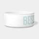 Turquoise aqua bleu-vert bleu-blanc bol de chien avec gris "BEST DOG EVER" et le nom de votre chien customisé dans un script de calligraphie chic et élégant police de texte superposition. Entrez le texte personnalisé que vous souhaitez pour l'arrière - plan et la couche supérieure du texte pour créer votre propre poêle en céramique moderne personnalisée, minimaliste et amusant. Voir notre collection de bols de coordination et obtenir un set!