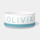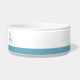 Boule turquoise vert foncé et personnalisé pour la nourriture ou l'eau de votre chien ou chat avec une bordure rayée moderne et minimaliste et des lettres de police minces et tendance avec espace pour taper le nom de votre animal.