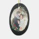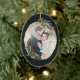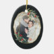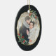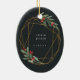Eleganter Weihnachtsschmuck aus Foto mit einem beliebten Foto umrahmt von einem Imitat goldenen Folie ovaler geometrischer Rahmen mit grünem Wasserfarbenfolien und roten Beeren. Fügen Sie Ihre Namen und das Jahr oder eine benutzerdefinierte Meldung auf der Rückseite in einem passenden, zarten geometrischen Rahmen hinzu.