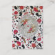 Elegantes Schwarz-Weiß-Rot-Blumendesign mit stilisierten Rose, Blume, Vogel-, Schmetterling- und Pfauenmotiven, die mit digitaler Nachbildung einer antiken orientalischen Miniatur erstellt wurden. Künstlerisches und cooles Design für alle Zwecke.