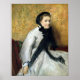 Eine Frau in einem schwarz-grauen Kleid, wie von Edgar Degas gemalt.