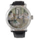 Uhr, Vintage Männeruhr mit schwarzem Lederarmband