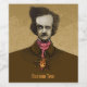 Schreckt Edgar Allan Poe, der einen Goldbug auf seiner Krawatte kitzelt. Farbige Tintenstift-Zeichnung. Eigener Text.