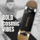Mit diesem modernen schwarz-goldenen Skateboarddeck können Sie Ihren Stil noch steigern. Sein kosmisches, galaxisch inspiriert Design ist eine kühne Aussage, und Sie können leicht Ihren eigenen Namen oder Text hinzufügen, um es wirklich einzigartig zu machen. Es ist das perfekte Herzstück für Ihren nächsten Skate oder als bemerkenswertes Dekorationsstück für Ihr Zimmer. Entdecken Sie coolere Skateboarding-Produkte in der vollen Kollektion! ©Susanne Sachers - Sunny Wanderlust 🌞 ✈️