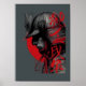 Edgy Samurai Warrior Japanese Ink Red Sun Poster
