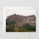 Ein Foto des Schlosses Edinburgh auf dem Schlossfelsen, umgeben von Gebäude und Steinen in Edinburgh, Schottland, auf einer Postkarte.