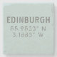 Edinburgh, die schottischen Längen- und Breitengrade-Koordinaten in Not leidenden Schriftart geben diesem einen modernen urbanen Look