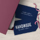 Stylish bold gift tag with the word "Handmade" in bold font and a stylish script for your name or store name in white with an editable background color on both sides (click edit to change). This handmade tag is extremely versatile; you can change the font, font color and font size. This card is perfect for crafters and anyone that make handmade goods, like artists, knitters, dressmakers, etc.