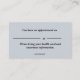 Diese bearbeitbare Visitenkarte zeigt eine Abbildung eines Blicks auf die links und die Details des Unternehmens auf der rechten Seite. Auf der Rückseite ist eine Termin-Erinnerung. Der Text auf beiden Seiten ist editierbar, also ändern Sie die Informationen sowie den Stil, die Größe und die Farbe des Schriftartes. Auch die Hintergrundfarbe auf beiden Seiten kann geändert werden. Genießen Sie Ihre neue Eye Clinic Business Card!