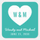 Editable Hintergrundfarbe Monogram Heart Wedding Quadratischer Aufkleber