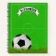 Personalisiertes Fußballheft mit einem hellgrünen Fußballplatz, einem Fußball und dem Namen Ihrer Kinder.