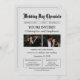 Diese reguläre, minimalistische, leicht personalisierbare Zeitungshochzeit-Einladung wird Ihre Gäste begeistern und die wichtigen Hochzeitstag-Nachrichten, die sie brauchen, liefern. Es ist eine einzigartige Hochzeitseinladung, die Vintage Zeitungen mit verzierter Retro-Typografie im Masthead nachahmt. Unter dem Namen der Zeitung, "Hochzeitstag Chronik", sind wichtige Details über das Hochzeitdatum, die Zeit und den Ort der Hochzeit. Die Titelgeschichte kündigt an: "YOU'RE INVITED!" in allen Kaps, mit zwei Fotos von Braut und Bräutigam und noch mehr Details über Ihre Hochzeitsfeier. Die bearbeitbaren Eingabeaufforderungen ließ, die zu übermittelnden Informationen so behalten, wie sie sind, oder sie in Ihre eigenen Worte zu setzen. Die Rückseite der Einladung enthält einen QR-Code mit Raum und Anweisungen, um bei Bedarf mehr hinzuzufügen. Fast die gesamte Einladung ist anpassbar. Herzlichen Glückwunsch von Zuhause Together!