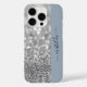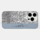 EDITABLE Name Glitzern Bokeh silber & staubblau iPhone 16 Pro Hülle