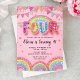 Editable Pink Rainbow Sequin 4th Birthday Invitati Einladung