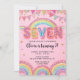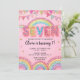 Editable Pink Rainbow Sequin 7th Birthday Invitati Einladung