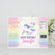 Thema: Einhorn Regenbogen. Gelegenheiten: Geburtstagsparty für Kinder, Babydusche. Stil: Niedlich, elegant, Boho. Farben: Regenbogen, Gold, Weiß, Pastellfarben. Grafiken: Regenbogen, Wasserfarbeneinfassung, Falsches Gold.