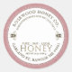 Ce étiquette blanc et de couleur rose à bords kraft a des champs modifiables pour se conformer aux exigences énumérées par le Conseil national du miel : le mot miel, votre nom d'entreprise, votre nom personnel, votre adresse et le poids net du miel en grammes et onces doit être inclus si vous vendez votre miel. Comprend des illustrations vintages d'abeilles et de roses avec bordure pointillée. HONEY est écrit dans un texte en or ciselé. Conversions de poids net miel : 8oz (227g), 12oz (340g), 16oz (454g), 32oz (907g), 5lb (2,27kg).