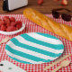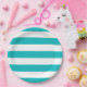 Papierplatte mit bearbeitbarer Farbe (klicken Sie auf die Hintergrundfarbe anpassen und ändern) und weißen Streifen. *Bitte beachten Sie, dass das Zazzle-Wasserzeichen, das in der Zoomvorschau angezeigt wird, NICHT auf dem gedruckten Endprodukt erscheint. © Rosewood and Citrus