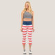 Leggings mit weißem Streifen und bearbeitbarer Hintergrundfarbe im nautischen Stil, klicken Sie auf die Schaltfläche Anpassen, um die Hintergrundfarbe der Vorder- und Taillenschicht zu ändern. *Bitte beachten Sie, dass das Zazzle-Wasserzeichen, das in der Zoomvorschau angezeigt wird, NICHT auf dem gedruckten Endprodukt erscheint. © Rosewood and Citrus