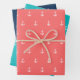Editierbare Hintergrundfarbe Weißer Anker Nautic Geschenkpapier Set