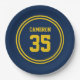 Papierfarben mit sportlichem Schriftart und runden Streifen grenzen mit bearbeitbaren Tellern (klicken Sie auf Anpassen, wählen Sie "VarsityStripesRound1" und ändern Sie jede Stripfarbe in eine Farbe Ihrer Wahl) vor einer Hintergrundfarbe, die ebenfalls editierbar ist (klicken Sie auf Anpassen und ändern Sie die Hintergrundfarbe). Diese Teller sind ideal für alle sportlichen Feste, Abschluss oder einen sportlichen Geburtstag. Personalisieren Sie es, indem Sie den Platzhalter-Text ersetzen. Für weitere Optionen, wie zum Beispiel den Schriftart zu ändern und ihn zu vergrößern oder zu verändern, klicken Sie auf den Button "Anpassen". *Bitte beachten Sie, dass das Zazzle-Wasserzeichen, das in der Zoomvorschau angezeigt wird, NICHT auf dem gedruckten Endprodukt erscheint. © Rosewood and Citrus