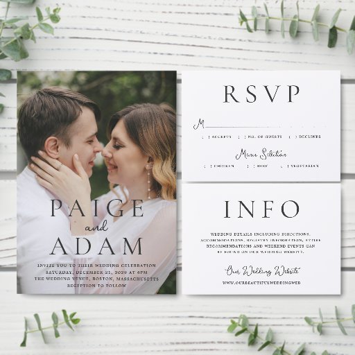 Modern editorial style wedding invitation with your names in bold typography over your favorite photo. A clean and simple design for a wedding during any time of year.