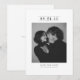 Dieses Schwarz-Weiß-Foto Save the Date ist sauber, klassisch und modern. Die Serifenschrift verleiht ihm ein starkes, zeitloses Aussehen, während das fette Datum sofort ins Auge fällt.