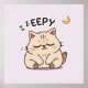 Eine Abbildung zeigt eine Szene mit einer komisch erschöpften Katze, die auf dem Wort "SLEEPY" spielt, indem sie es auf "EEPY" verkürzt, als ob die Katze zu müde wäre, um das ganze Wort zu sagen. Es bewahrt einen minimalistischen Stil und konzentriert sich auf den humorvollen Ausdruck und die Haltung der Katze. Die zentrale Positionierung der Katze und der einfache Hintergrund sorgen dafür, dass der Fokus auf dem lustigen, schläfrigen Charakter bleibt.