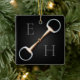 Für Reiter und Pferdefreunde bietet dieses Ornament eine Trompe l'oeil-Illustration eines Kupfer-Mund-Egobutt-Schlangenbiss zwischen zwei Monogrammen. Sie können entweder Ihre ersten und letzten Initialen Ihres Namens oder die Initialen eines Paares verwenden.