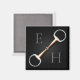 Für Reiter und Pferdefreunde bietet dieser Magnet eine Trompe l'oeil-Illustration eines Kupfer-Mund-Egobutt-Schlangenbiss zwischen zwei Monogrammen. Sie können entweder Ihre ersten und letzten Initialen Ihres Namens oder die Initialen eines Paares verwenden.
