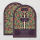 Set the tone for your medieval fantasy wedding with a bold arch invitation design—a grand sword surrounded by florals, and gold accents against a eggplant background. Perfect for couples dreaming of an epic, romantic celebration. Make your love story legendary from the very first glance! NOTE: the gold featured in this design is NOT real foil.