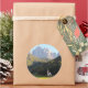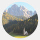 Collier photo souvenir rond avec l'église de San Giovanni à Ranui (Sankt Johann) en face des pics de montagne Geisler ou Odle dolomites à Père Noël Maddalena (Sankt Magdalena) dans le Val di Funes en Italie.