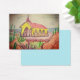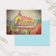 Un crayon d'aquarelle et la peinture de la chapelle Alto Vista à Aruba avec la mer des Caraïbes et divers cactus, rochers et arbustes épineux.