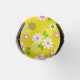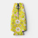 Die Fun Flasche cooler zeigt ein Retromuster aus weißen Blume mit rosa und grünen Mittelpunkten auf gelbem Hintergrund. Zentriert rosa Textfeld mit anpassbarer "Ehefrau des Party"