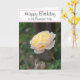 Herzlichen Glückwunsch zum Geburtstag zu meiner schönen Ehefrau. Liebe geschrieben in weißem Skript gegen hübsch-gelbe Rose mit pastellrosa Farbe. Verlass eine spezielle Nachricht drinnen oder personalisiere sie draußen und drinnen für jeden. Handgemalte kleine Blume auf links Seite mit einer Nachricht im Skript. Original Fotografie, Kunstwerk und Kartenverse Design © TamiraZDesign