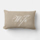 " Ehefrau" im weißen Skript-Schriftart für die Braut/für ihr Imitatjutefaserchichochzeitspaargeschenk Throwkissen Land Leinenleinwand rustikalen Chic schäbiges. Sehen Sie auch das zusammenpassende "Ehemann" Kissen im Geschäft.