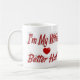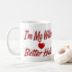 Tasse mit Ich bin die bessere Hälfte meiner Ehefrau in 3D-Rot-Text. Erhältlich in verschiedenen Größen und Stilen.