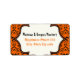Skulls Damask Orange schwarzes Muster Halloween Hochzeitslabel. Dieses formale, elegante Design besticht durch ein Damast-Blumenmuster und Schädelmuster sowie durch einen Elfenbeinrahmen in der Mitte. Klassisches, aber zeitgemäßes Design mit zwei Schriftart: einem Vintagen und einem coolen. Elegantes, sprichwörtliches Design, perfekt für gotische oder Halloween-Hochzeiten im Herbst.