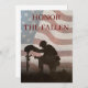 Ehre den Gefallenen mit einem letzten Lob. Zu Ehren unserer gefallenen Mitglieder der Streitkräfte. Soldat kniet vor dem Grab seines gefallenen Kameraden. Im Hintergrund die Flagge der USA.