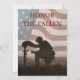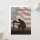 Ehre den Gefallenen mit einem letzten Lob. Zu Ehren unserer gefallenen Mitglieder der Streitkräfte. Soldat kniet vor dem Grab seines gefallenen Kameraden. Im Hintergrund die Flagge der USA.