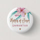 Glam eleganter, floraler Brautparty-Knopf in Aquarellfarbe, mit Kupfer-Glitzer, handschriftlich gebürstet wie Typografie-Skript, rosa Magnolienblättern, grüne Minze Eukalyptus-Blätter und ein kleines Herz. +++++++++ Einfach mit dem Ehrennamen personalisieren. +++++++++++ Geeignet für die Sommermonate trendige moderne Hochzeitssommer-Brautpartys.