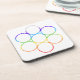 Quadratisches Untersetzer Set mit diesem Sakralen Geometriesymbol Ei des Lebens in den Farben, die das Chakras-Design darstellen. Verfügbar in mehreren Stilen und Größen