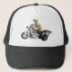 Ein Eichhörnchen reitet ein Spielzeugmotorrad, den Schwanz, der im Wind durchbrennt.