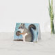 Ein Farbstift zeichnend von einem glücklichen Eichhörnchen, das eine große schwarze Nuss gefunden hat! Passen Sie diese Grußkarte an, indem Sie den Text in den Anzug selbst ändern!