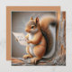 Ein Eichhörnchen steht auf einem Zweig und liest eine Geburtstagsfeier ein. Alle Texte können geändert werden.
