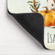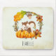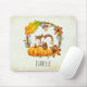 Personalisierte Mousepad mit einem niedlichen Eichhörnchen, stehend hinter einigen orangefarbenen Kürbissen. Ein Laubkranz umgibt sie mit Eichenblättern, orangefarbenen Blume und anderen Blätter. Hintergrund ist eine cremefarbene Farbe, mit einem rauen Blick um die Kanten.