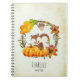 Spiralheft mit niedlichem Eichhörnchen, stehend hinter einigen orangefarbenen Kürbissen. Ein Laubkranz umgibt sie mit Eichenblättern, orangefarbenen Blume und anderen Blätter. Hintergrund ist eine cremefarbene Farbe, mit einem rauen Blick um die Kanten.