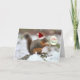 Eichhörnchen Weihnachtskarte mit einem Foto eines Eichhörnchens im fallenden Schnee mit einer Weihnachtsmannmütze und Sprichwort "Frohe Weihnachten" in einem Sprechballon. "Frohe Weihnachten" ist in festlich rot und grün geschrieben. Das niedliche Eichhörnchen isst eine Erdnuss und sitzt auf einem von Schnee umgebenen Felsen auf dem Boden. Eine lustige Weihnachtskarte für alle Eichhörnchenliebhaber!