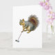 Das Eichhörnchen, das einen Golfclub an einem Ball schwingt, macht eine amüsante Karte für einen Golfspieler.